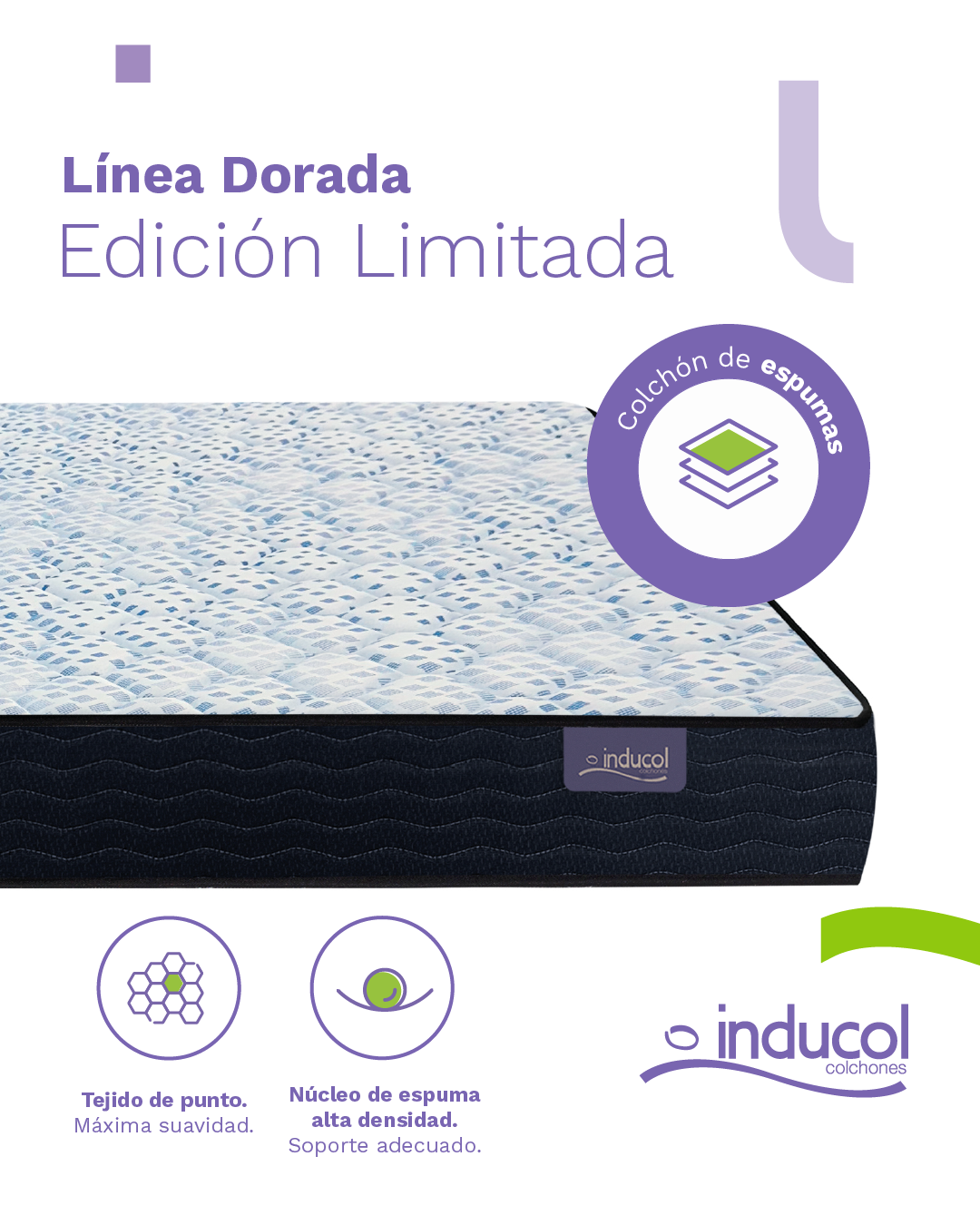 Colchón L. Dorada 24cm alto Inducol Ed. Limitada de Espuma 2 ½ Plaza