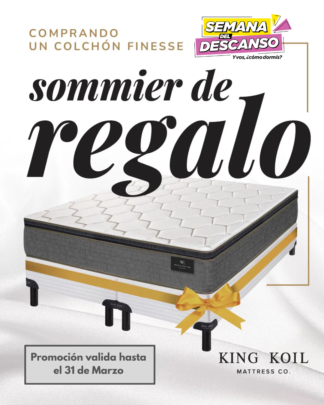 Con la compra de un colchon FINESSE de King Koil te llevas la BASE SOMMIER DE REGALO!