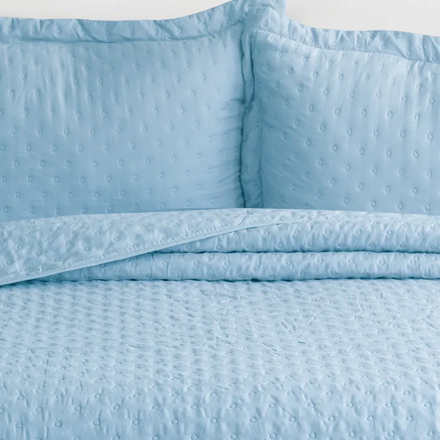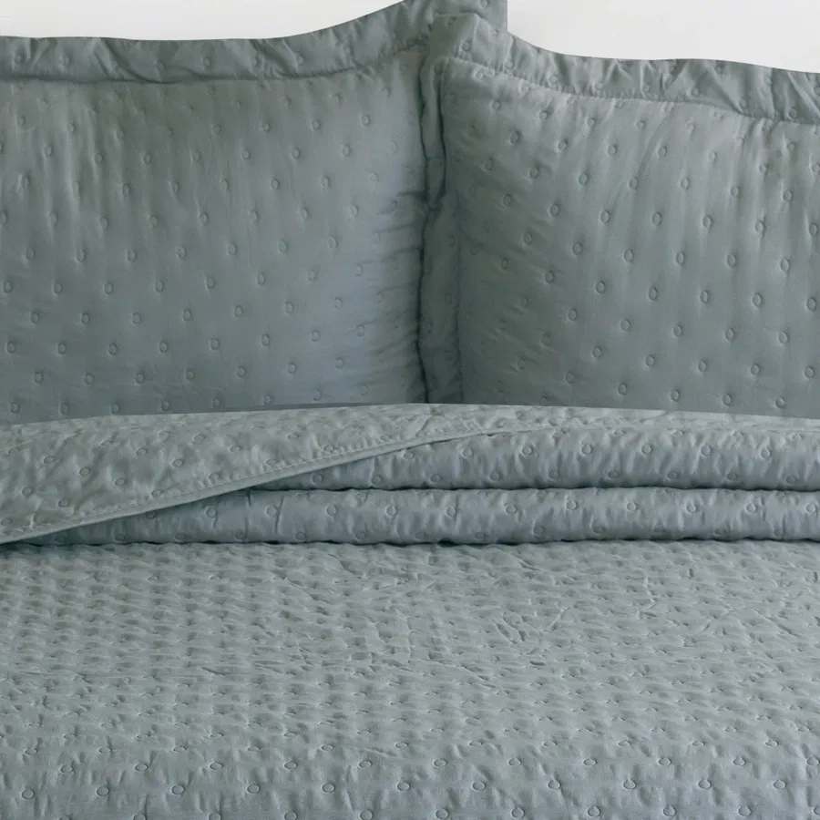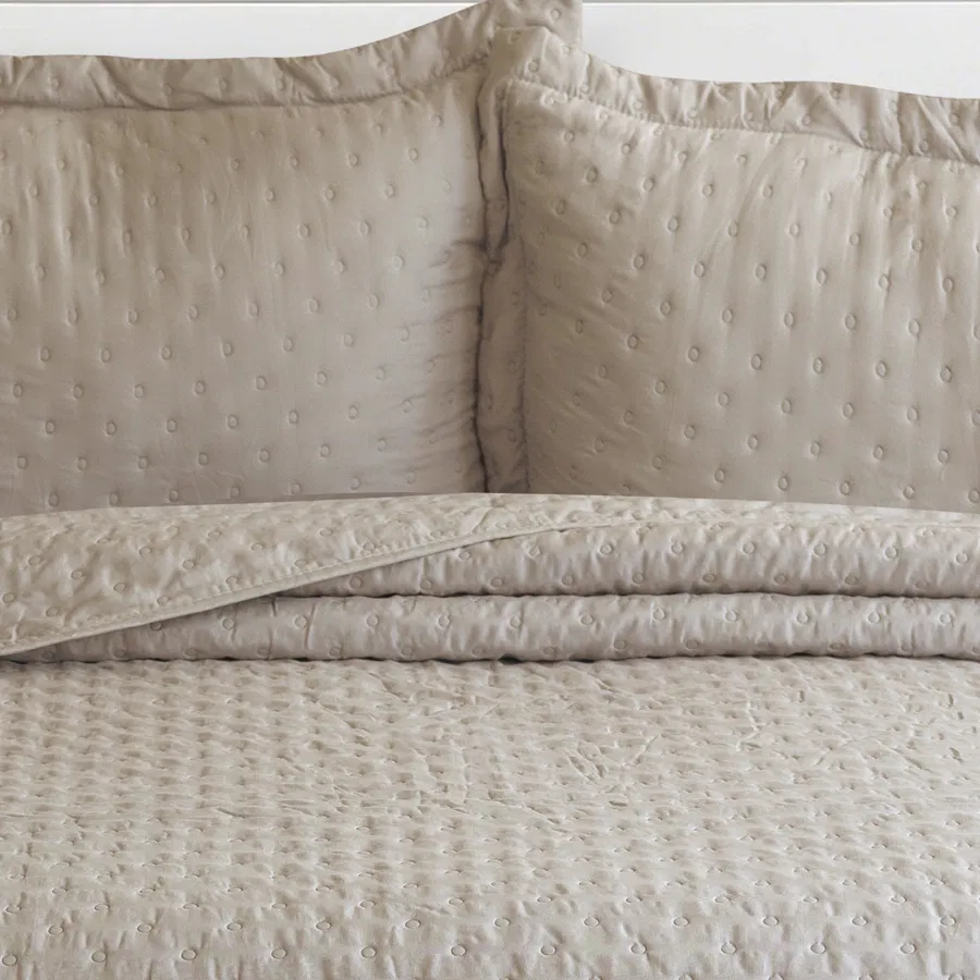 El Cubrecama Quilt Dots se distingue por su diseño contemporáneo, su suavidad al tacto y su versatilidad. Está fabricado con Soft Touch, un material que ofrece una combinación óptima de suavidad y comodidad al contacto con la piel. Su proceso de prelavado garantiza una mayor flexibilidad en el tejido y una textura más agradable desde el primer uso.
