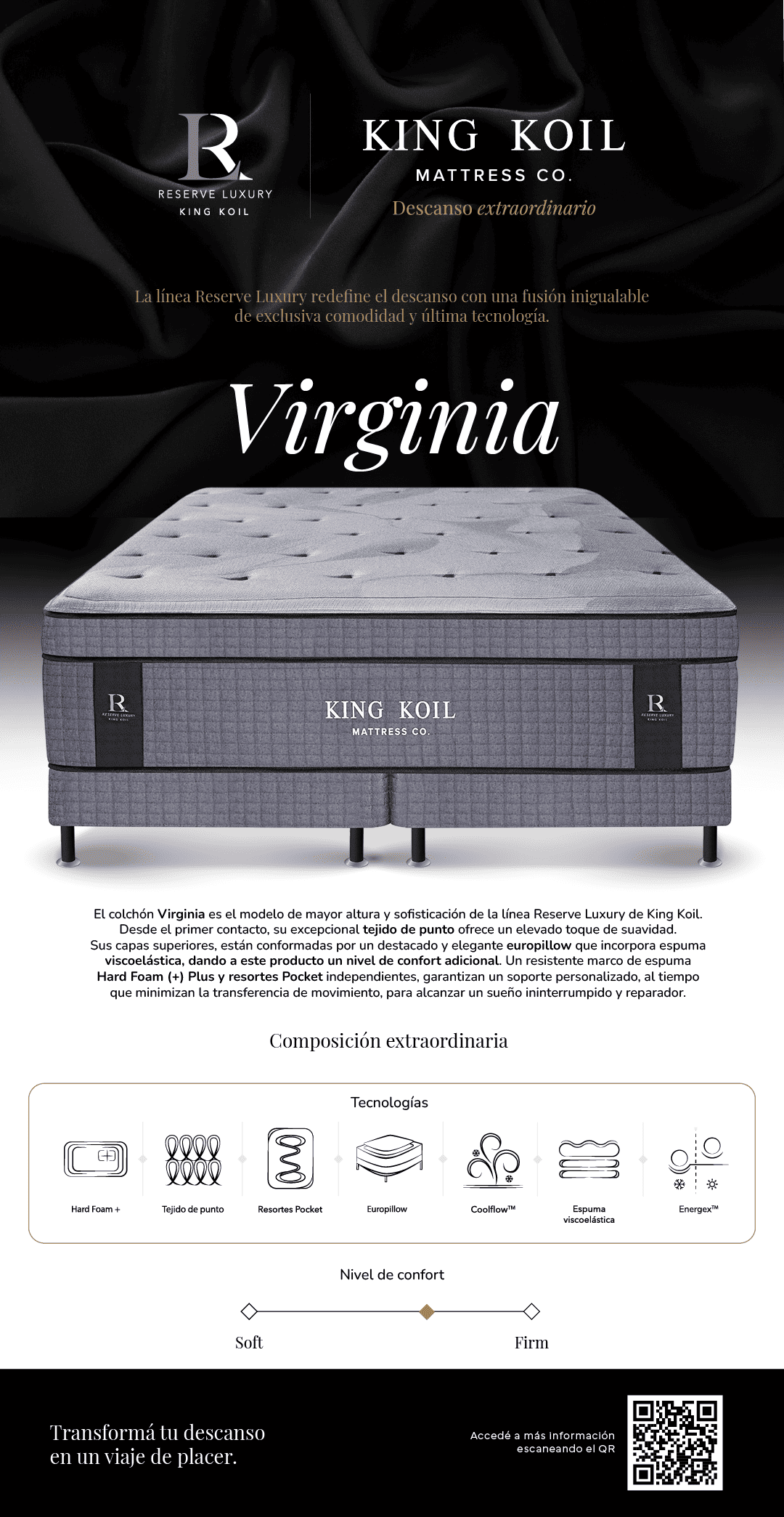 El colchón Virginia es el modelo de mayor altura y sofisticación de la línea Reserve Luxury de King Koil.
